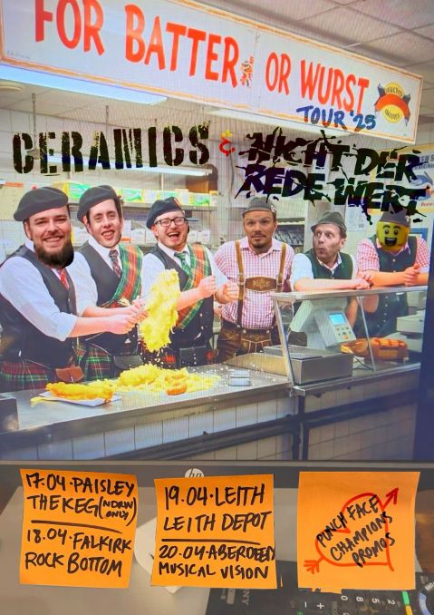 With a 20+ year history of deutschpunk in the streets and squats of Berlin and a 2+ year history of some Scot on bass trying to tickle out more skate punk. Featuring woah-woah's for all the family and a cast-iron pledge that we will stop playing at the end of our set.